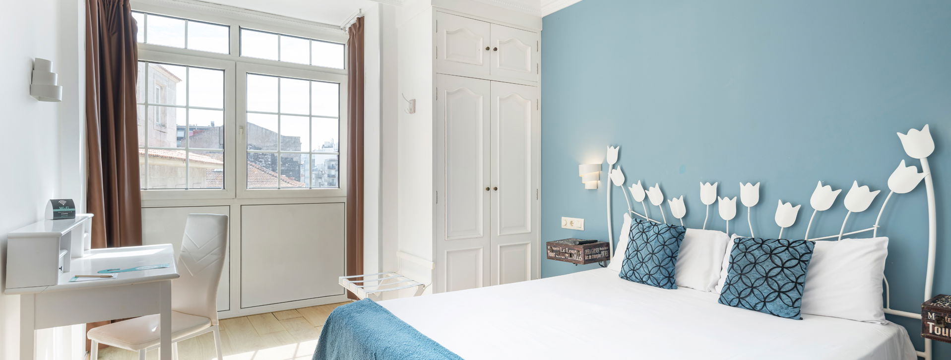Dispone de una cama de 135 cm o dos camas de 90 cm, armario, escritorio, TV de pantalla plana, baño privado (ducha o bañera), conexión Wi-Fi gratuita.